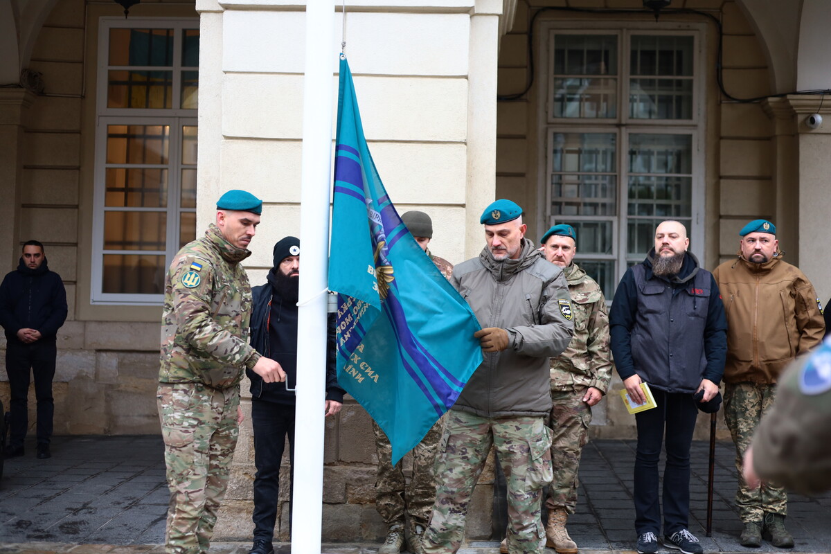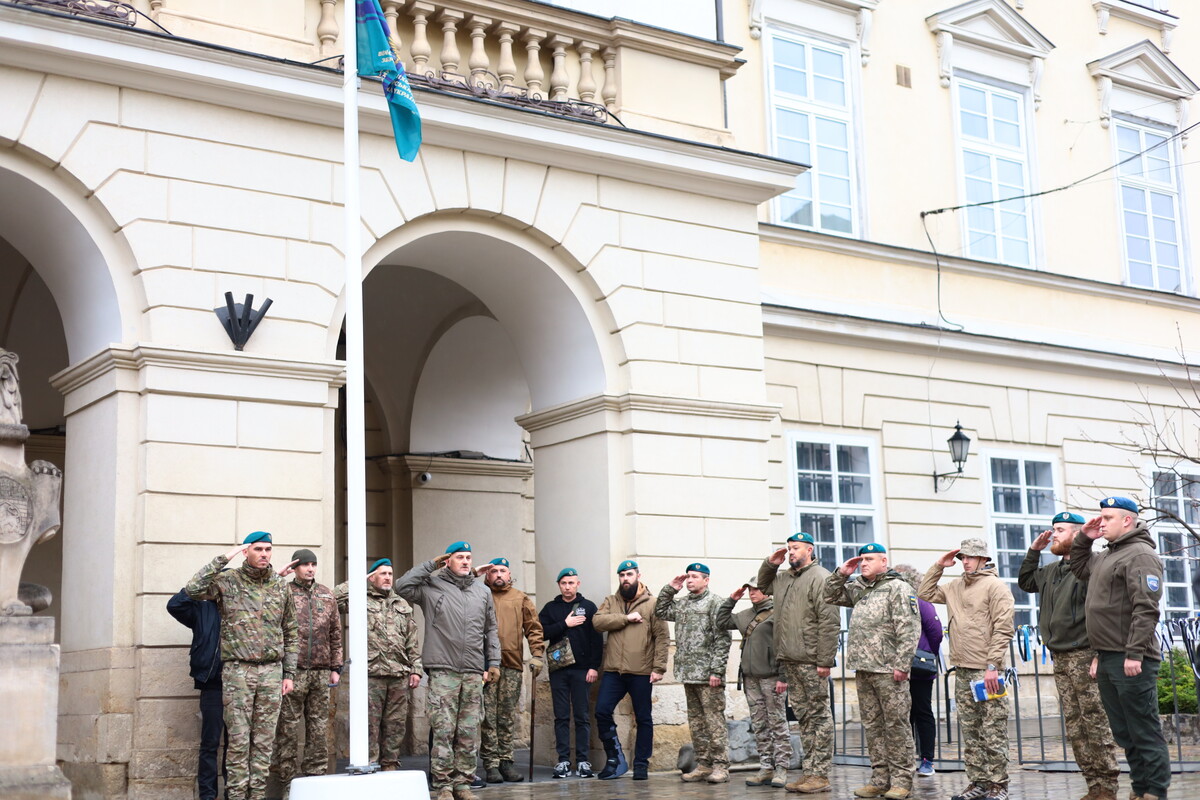 Прапор перед Львівською ратушею підняли військовослужбовці 30-го корпусу Морської піхоти.