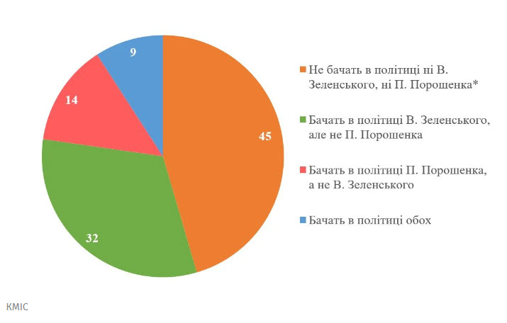 І лишедев’ять відповіли, що хотіли би, щоб в політиці залишилися і Зеленський, і Порошенко», – йдеться у результатах опитування.