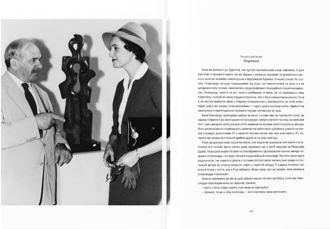 Пані Архипенко-Ґрей оповідає про спільне життя надзвичайно щиро, при тому незмінно делікатно, тонко аналізує почуття й відкриття, радощі й труднощі незвичного союзу. А йому довелося пройти чимало випробувань, адже суспільство (невіддільна часточка якого — ще й родичі волелюбної Френсіс, які дотримувалися традиційних поглядів) не завжди готове було толерантно сприймати стосунки, які виходять за межі узвичаєних. Та ще важливіша лінія цієї історії — мистецька: скульптура, малюнок, креативна праця — її яскраві «герої».