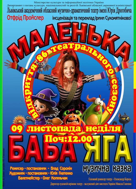 Також у день відкриття нового театрального сезону нова прем’єра чекає і на наймолодших глядачів – музична казка Отфріда Прайслера “Маленька баба Яга”. Її постановка відбудеться о півдні на головній сцені театру.