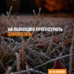 “За повідомленням Львівського регіонального центру з гідрометеорології України на території Львівської області 19 – 21 жовтня вночі та вранці сильний заморозок 0 – 5°.”