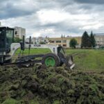 На футбольному полі вже зеленіє газон, який планують вперше покосити найближчими днями. Також проводиться додаткове вирівнювання території.