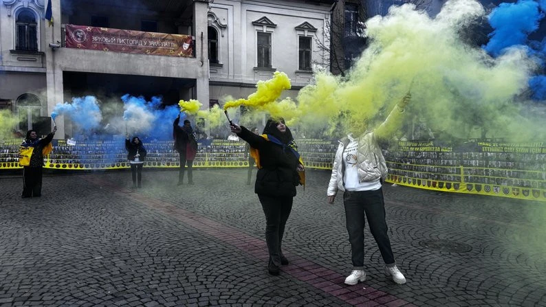 фото: СуспільнеОрганізаторами акції є родичі полонених військових та активістка Аліна Власенко — представниця ГО “Звільніть усіх”.Перед присутніми виступив колишній військовополонений, захисник “Азовсталі” Олександр Стогнієнко, який провів у полоні 3,5 року. Також священник Мукачівської греко-католицької єпархії Іван Кузьма прочитав молитву за українських воїнів, які перебувають у полоні чи вважаються зниклими.Акція завершилася близько 16:00 біля пам’ятника воїнам-захисникам у меморіальному парку поблизу ДЮСШ.У Львові відбулась масштабна акція на підтримку військовополонених і зниклих безвісти