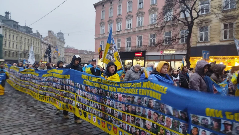 Про це з місця події повідомляє кореспондентка “Еспресо” Емма Стадник.На акцію прийшли сотні людей, зокрема родини захисників, військовослужбовці, які повернулися з російського полону, ветерани та усі небайдужі. Учасники акції розгорнули найбільший в Україні прапор, довжиною в 170 метрів із понад 5800 фотографій українських військовополонених та зниклих безвісти.На акцію прийшла Надія Хай, мама захисника Азовсталі, що вже четвертий рік перебуває у російському полоні. Жінка каже, що виходить на акції-нагадування “Не мовчи, полон вбиває” щосуботи, і щоразу на них збирається все більше людей, зокрема молоді.Учасники акції розпочали ходуЗгодом учасники ходою рушили центром міста з плакатами, банерами та прапорами різних бригад, воїни яких сьогодні перебувають у полоні росіян або зникли безвісти.”Стань голосом полонених!” – закликають учасники, наголошуючи, що кожна згадка та кожне слово про тих, на кого дуже чекають вдома, важливі.