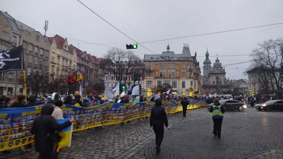 Про це з місця події повідомляє кореспондентка “Еспресо” Емма Стадник.На акцію прийшли сотні людей, зокрема родини захисників, військовослужбовці, які повернулися з російського полону, ветерани та усі небайдужі. Учасники акції розгорнули найбільший в Україні прапор, довжиною в 170 метрів із понад 5800 фотографій українських військовополонених та зниклих безвісти.На акцію прийшла Надія Хай, мама захисника Азовсталі, що вже четвертий рік перебуває у російському полоні. Жінка каже, що виходить на акції-нагадування “Не мовчи, полон вбиває” щосуботи, і щоразу на них збирається все більше людей, зокрема молоді.Учасники акції розпочали ходуЗгодом учасники ходою рушили центром міста з плакатами, банерами та прапорами різних бригад, воїни яких сьогодні перебувають у полоні росіян або зникли безвісти.”Стань голосом полонених!” – закликають учасники, наголошуючи, що кожна згадка та кожне слово про тих, на кого дуже чекають вдома, важливі.